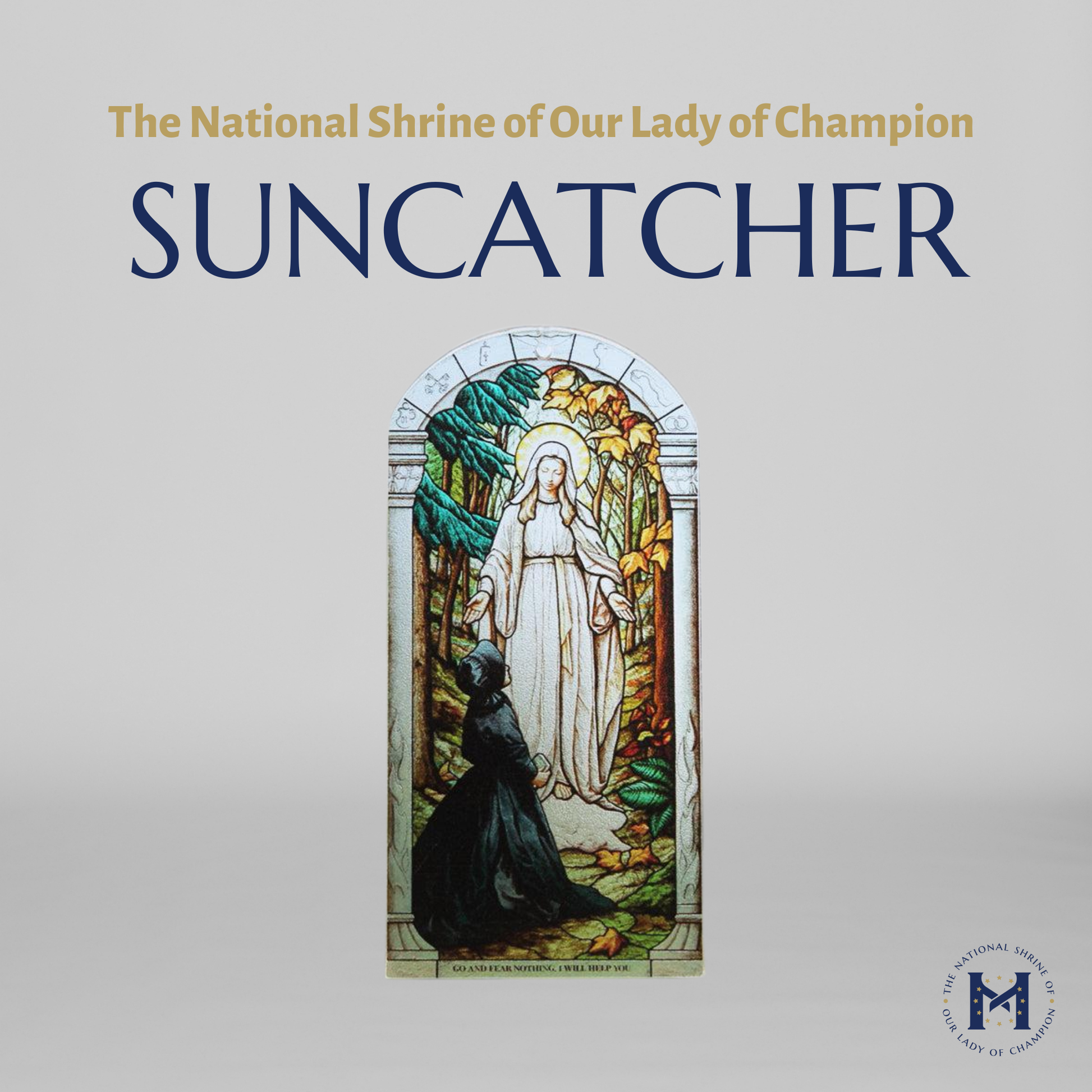 This is an acrylic replica of the stained glass window located in Mother of Mercy Hall on the grounds of the Shrine. It makes a great sun catcher or Christmas tree ornament. Perfect item for a gift as a reminder of the Shrine.